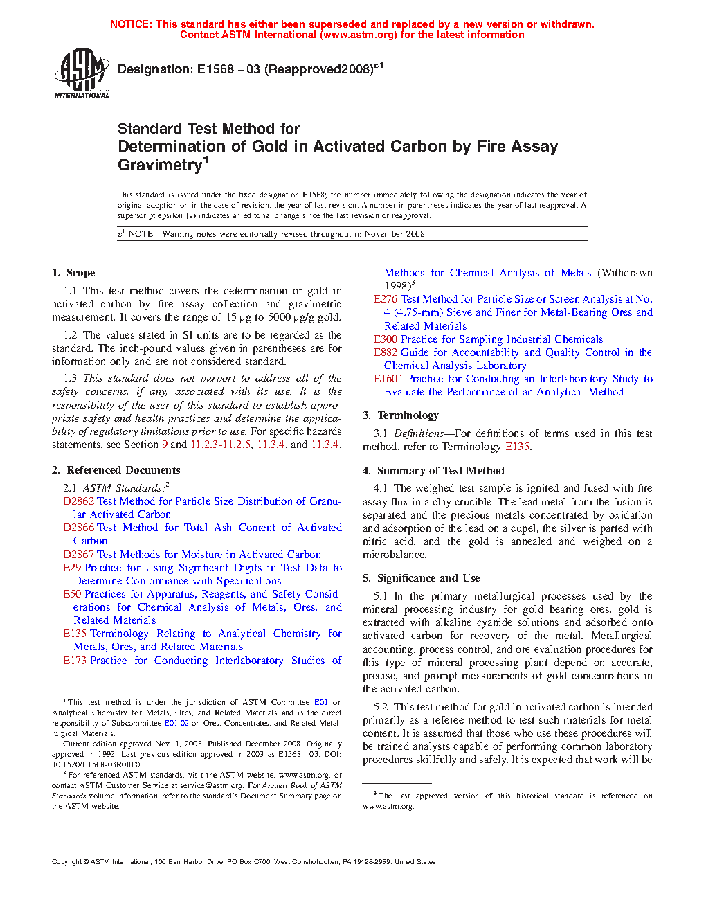 Standard Test Method for the Determination of Gold in Activated Carbon by Fire Assay Gravimetry