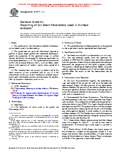 1.1 This guide covers the information needed to characterize ion beams used in surface analysis.