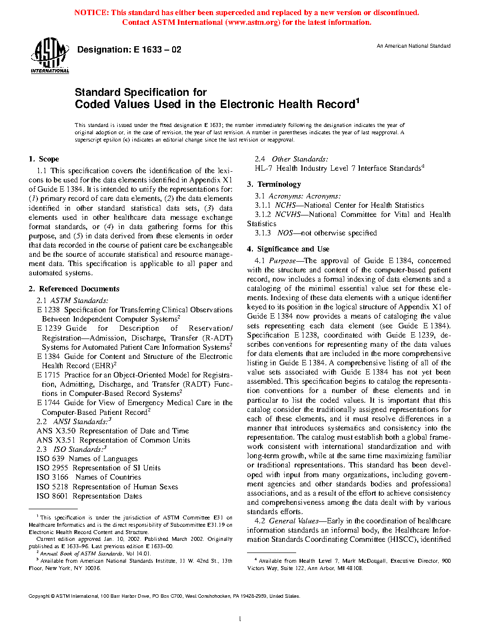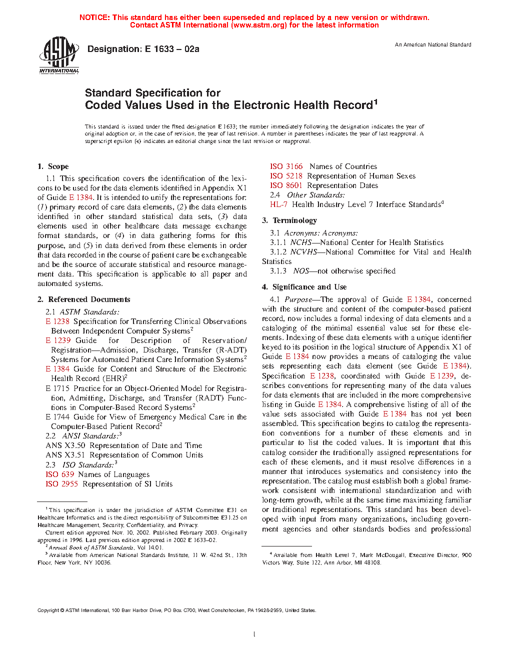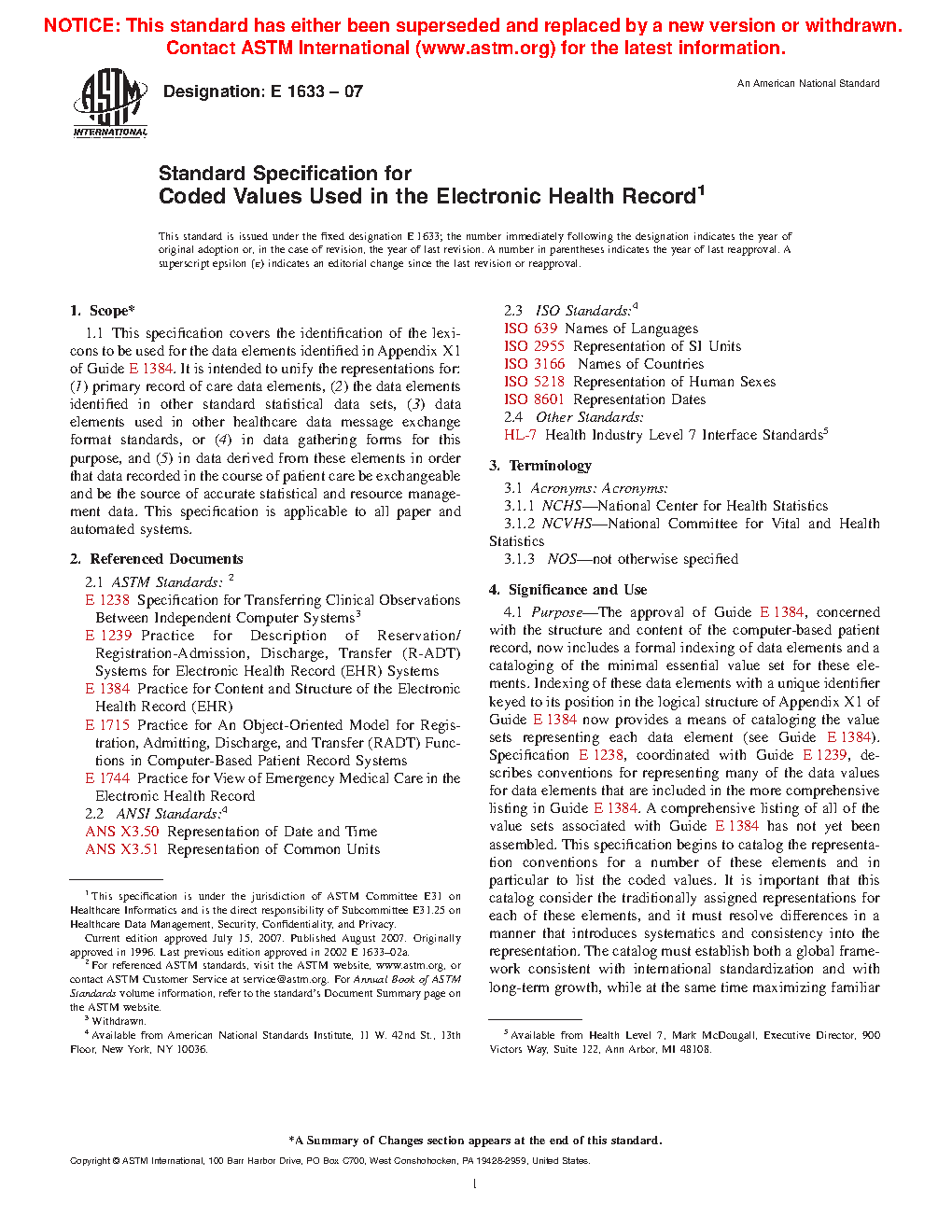 1.1 This specification covers the identification of the lexicons to be used for the data elements identified in Appendix X1 of Guide E1384. It is intended to unify the representations for: (1) primary record of care data elements, (2) the data elements identified in other standard statistical data sets, (3) data elements used in other healthcare data message exchange format standards, or (4) in data gathering forms for this purpose, and (5) in data derived from these elements in order that data recorded in the course of patient care be exchangeable and be the source of accurate statistical and resource management data. This specification is applicable to all paper and automated systems.