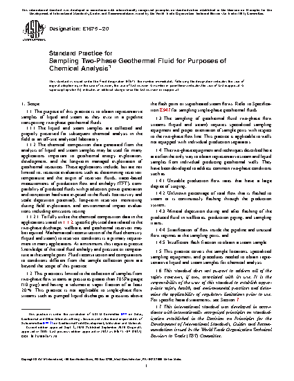 1.3 The sampling of geothermal fluid two-phase flow streams (liquid and steam) requires specialized sampling equipment and proper orientation of sample ports with respect to the two-phase flow line. This practice is applicable to wells not equipped with individual production separators.