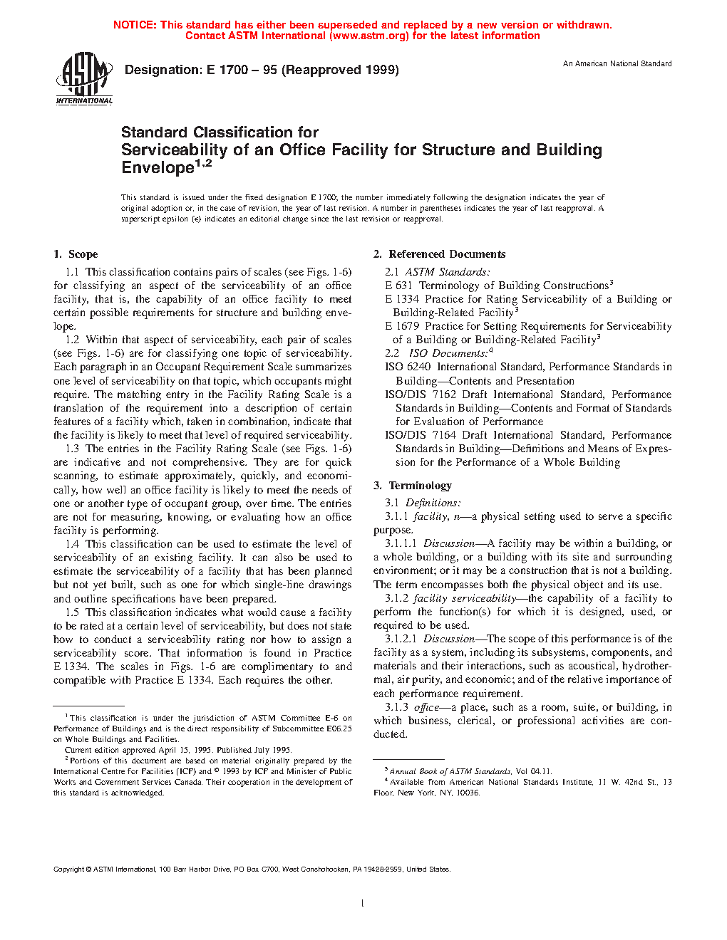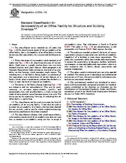 1.1 This classification covers matched sets of scales (see Figs. 1-24) for classifying an aspect of the serviceability of an office facility, that is, the capability of an office facility to meet certain possible requirements for structure and building envelope.