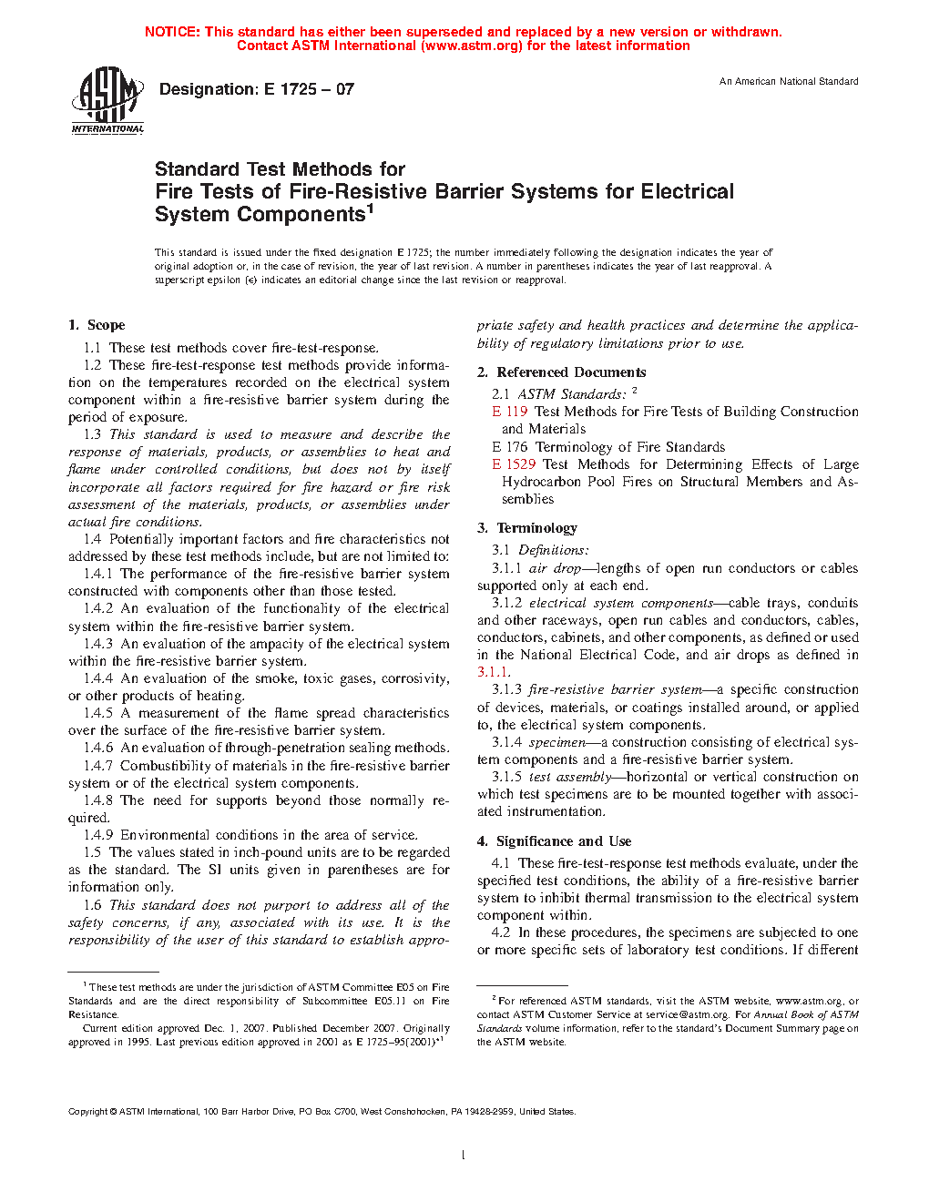 1.2 These fire-test-response test methods provide information on the temperatures recorded on the electrical system component within a fire-resistive barrier system during the period of exposure.