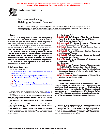 1.1 This is a compilation of terms and corresponding definitions used in the forensic sciences. Legal or scientific terms that are generally understood or defined adequately in other readily available sources may not be included.