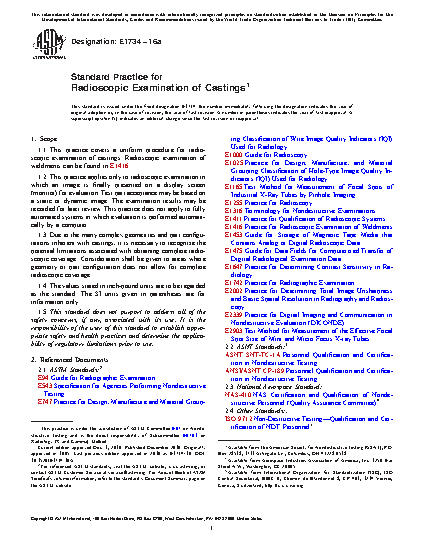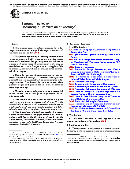 1.1 This practice covers a uniform procedure for radioscopic examination of castings. Radioscopic examination of weldments can be found in E1416.