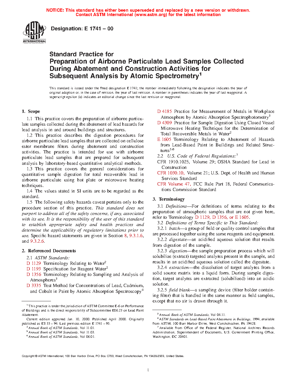 1.1 This practice covers the preparation of airborne particulate samples collected during the abatement of lead hazards in and around buildings and related structures.