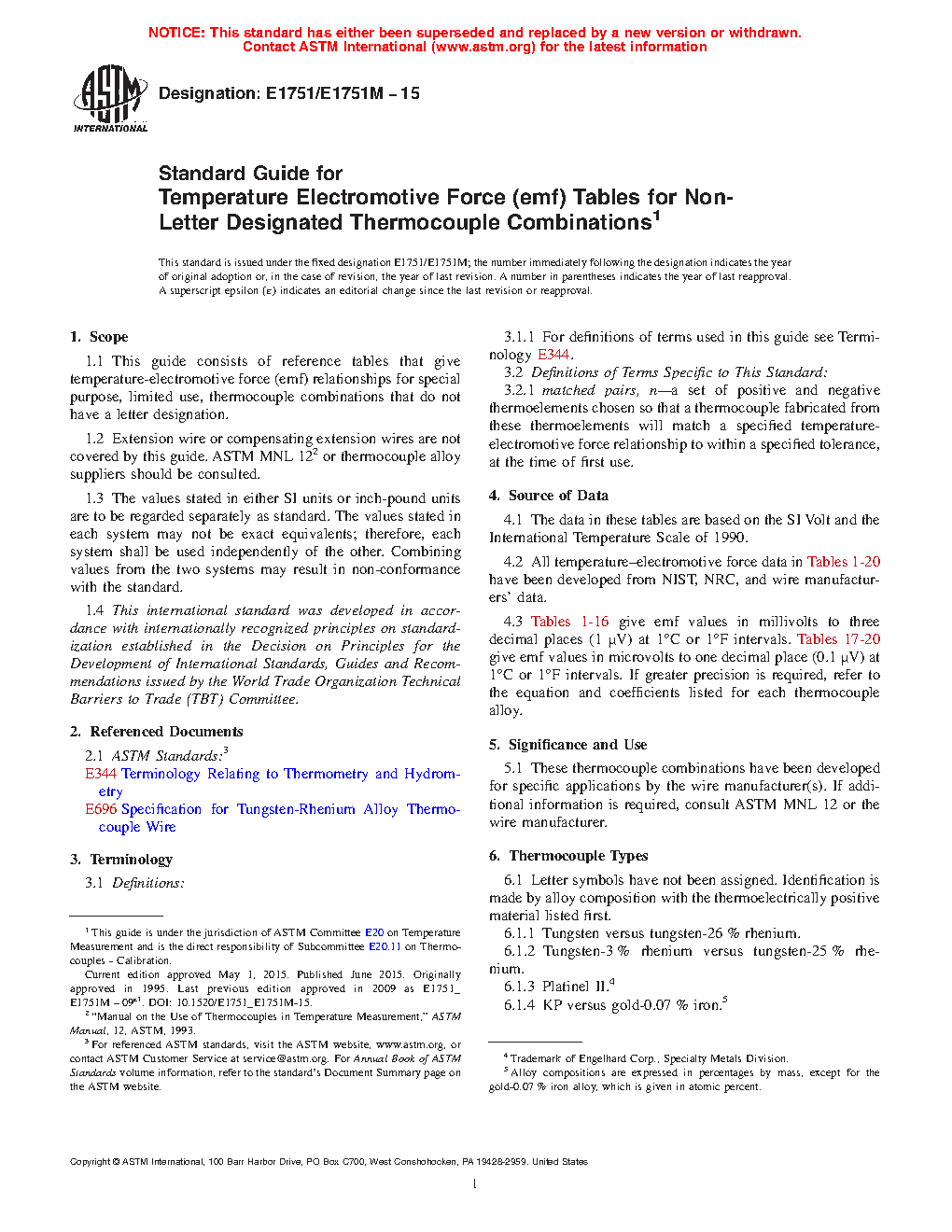 Standard Guide for Temperature Electromotive Force (emf) Tables for Non-Letter Designated Thermocouple Combinations