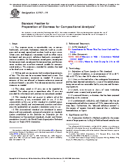 1.1 This practice covers a reproducible way to convert hardwoods, softwoods, herbaceous materials (such as switchgrass and sericea), agricultural residues (such as corn stover, wheat straw, and bagasse), wastepaper (such as office waste, boxboard, and newsprint), feedstocks pretreated to improve suitability for fermentation and fermentation residues into a uniform material suitable for compositional analysis.