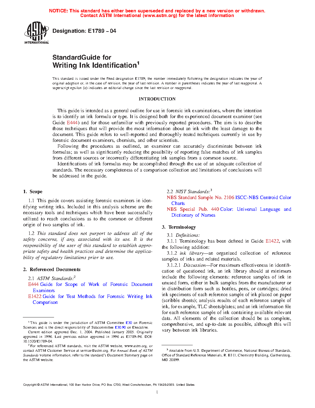 Standard Guide for Writing Ink Identification (Withdrawn 2013)