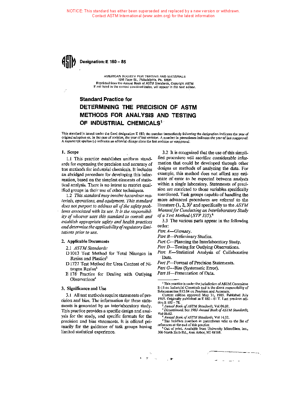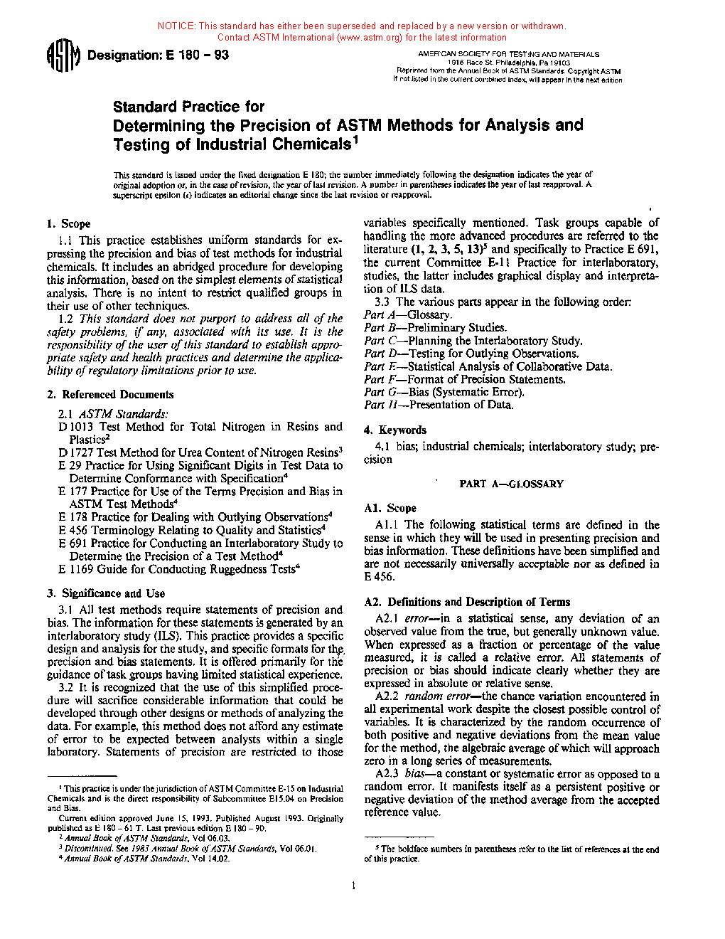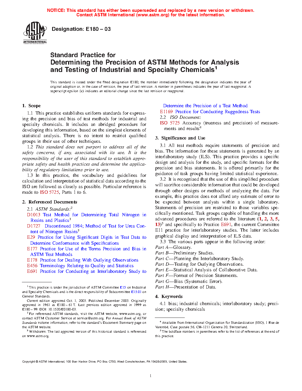 Standard Practice for Determining the Precision of ASTM Methods for Analysis and Testing of Industrial and Specialty Chemicals