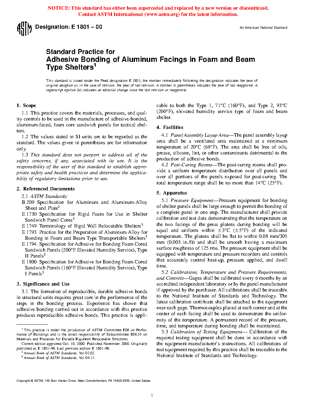 1.1 This practice covers the materials, processes, and quality controls to be used in the manufacture of adhesive-bonded, aluminum-faced, foam core sandwich panels for tactical shelters.