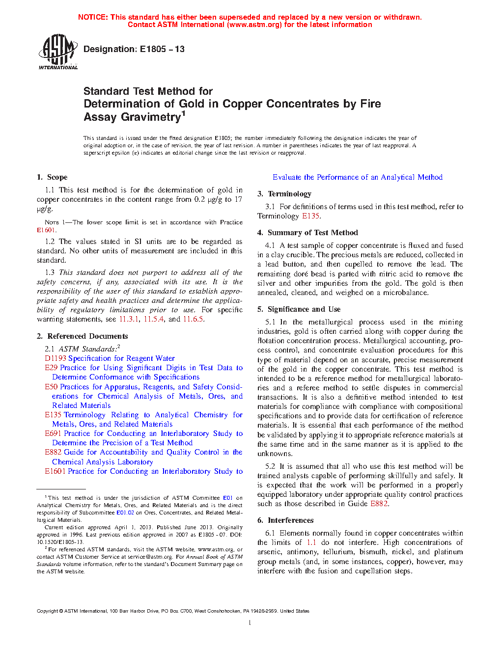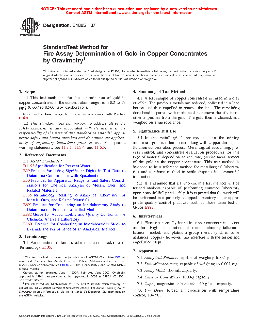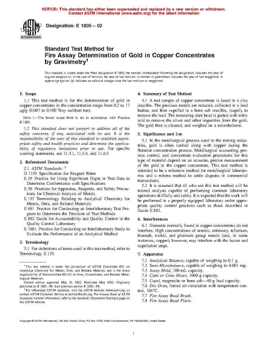Standard Test Method for Fire Assay Determination of Gold in Copper Concentrates by Gravimetry