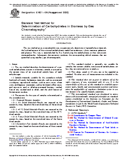1.1 This test method describes the determination of structural carbohydrates present in a biomass sample, expressed as the percent mass of an oven-dried sample basis of each anhydrosugar.