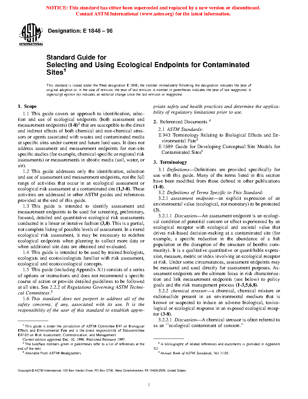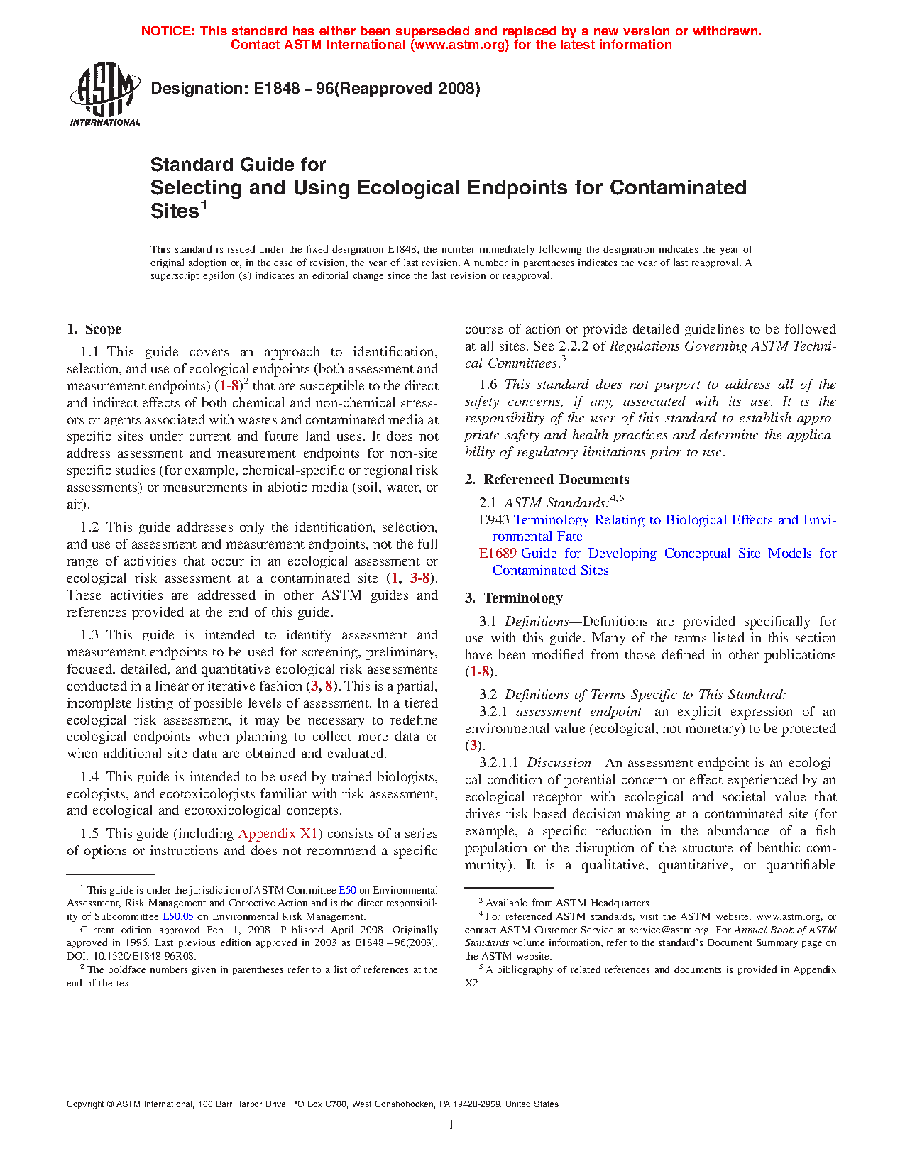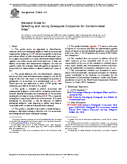 1.2 This guide addresses only the identification, selection and use of assessment and measurement endpoints, not the full range of activities that occur in an ecological assessment or ecological risk assessment at a contaminated site (1,3-8). These activities are addressed in other ASTM guides and references provided at the end of this guide.