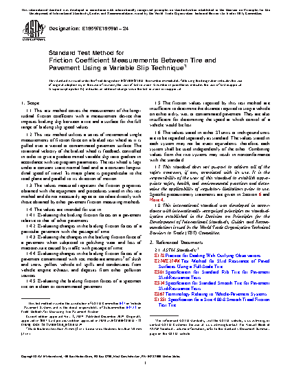 1.3 The values measured represent the friction properties obtained with the equipment and procedures stated in this test method and do not necessarily agree or correlate directly with those obtained by other pavement friction measuring methods.
