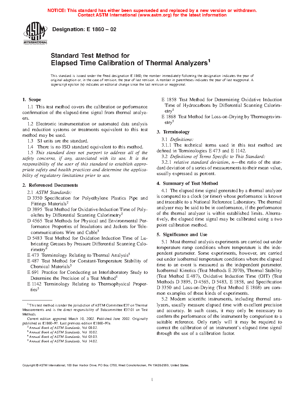 5.3 It is necessary to obtain elapsed time signal conformity only to 0.1 times the repeatability relative standard deviation (standard deviation divided by the mean value) expressed as a percent for the test method in which the thermal analyzer is to be used. For those test methods listed in Section 2 this conformity is 0.1 %.