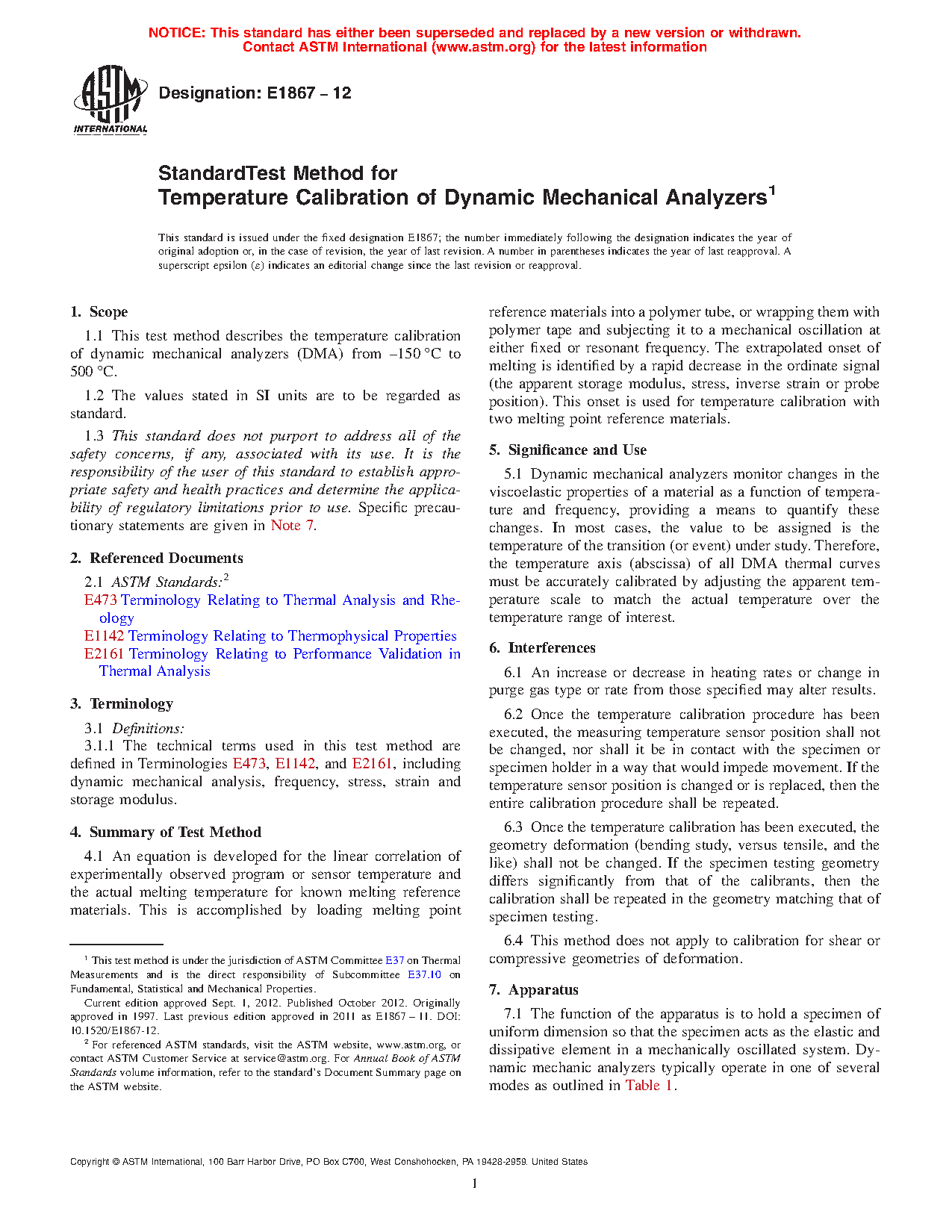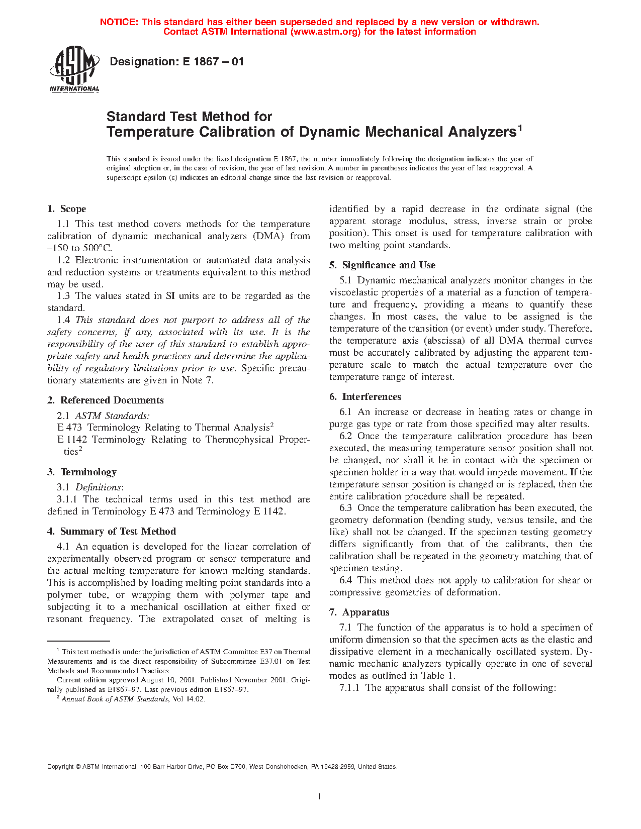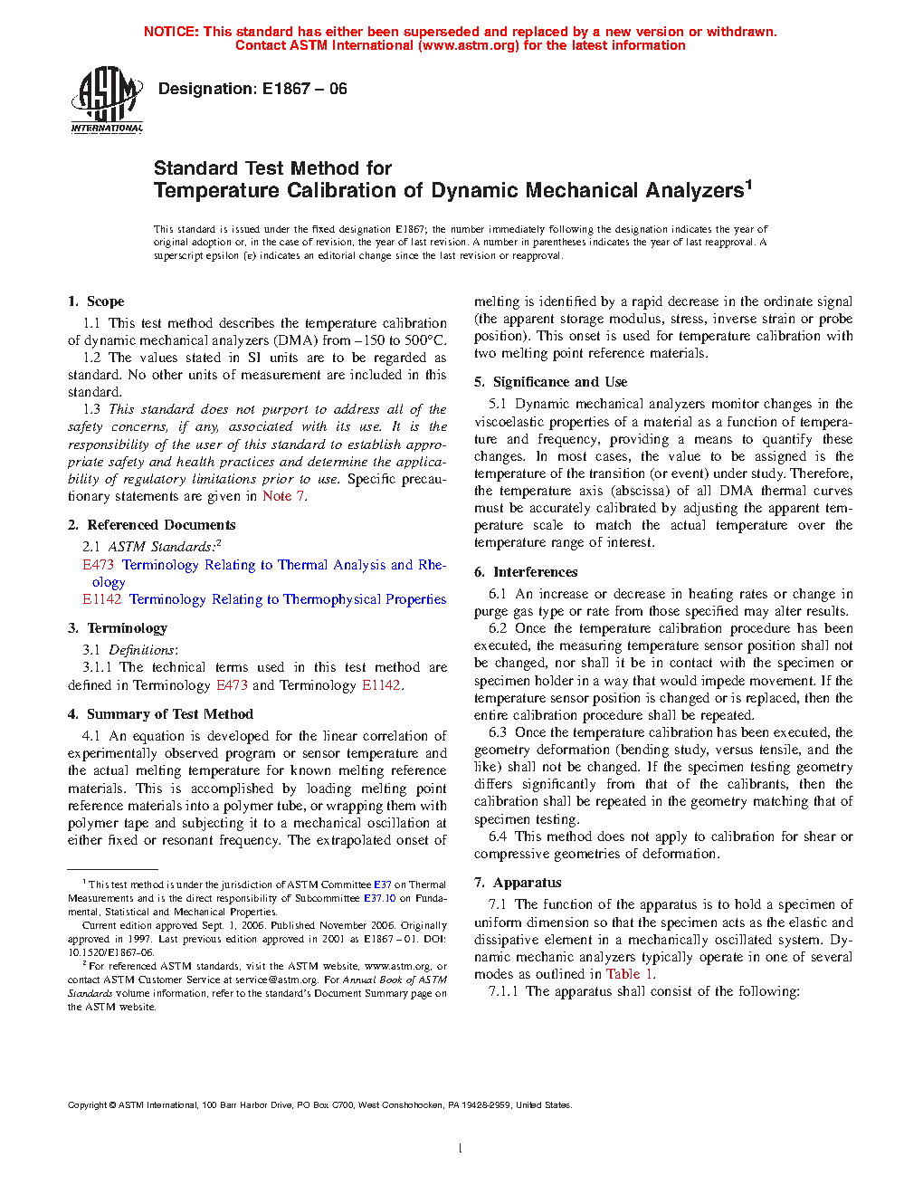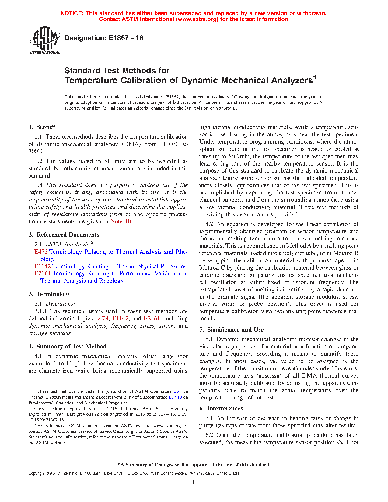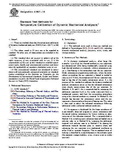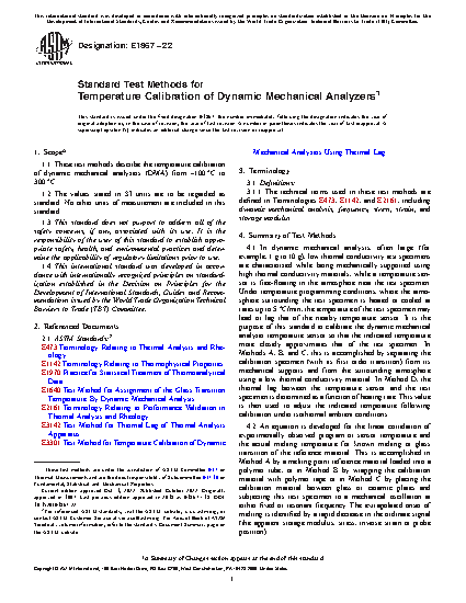 1.1 This test method describes the temperature calibration of dynamic mechanical analyzers (DMA) from –150 °C to 500 °C.