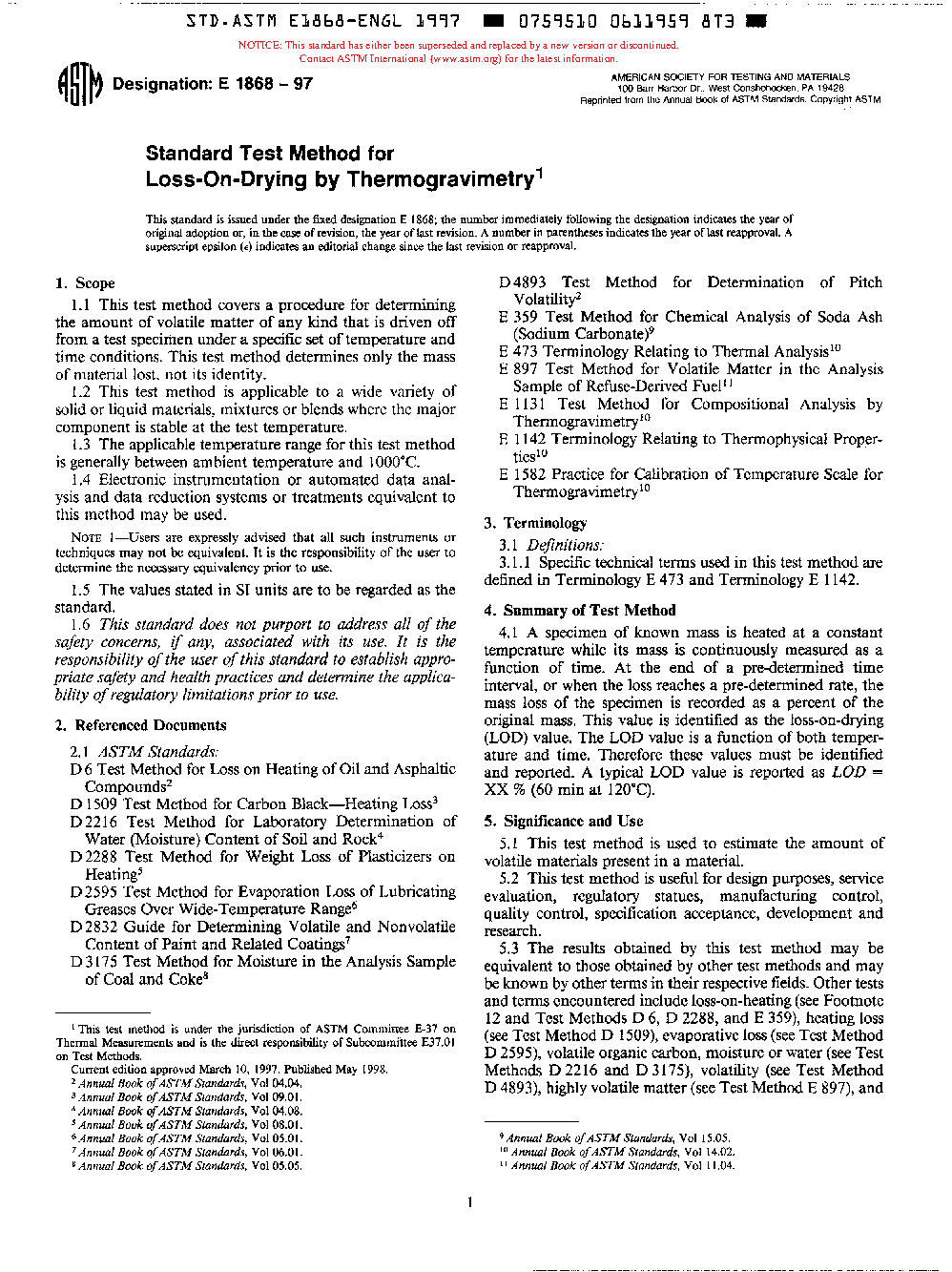 5.1 These test methods are used to estimate the amount of volatile materials present in a material.