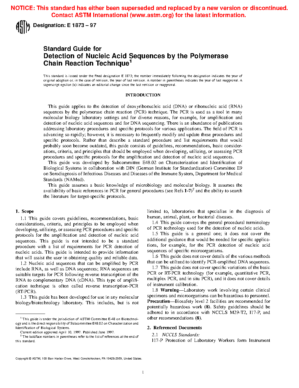 1.6 This guide does not cover details of the various methods that can be utilized to identify PCR-amplified DNA sequences.