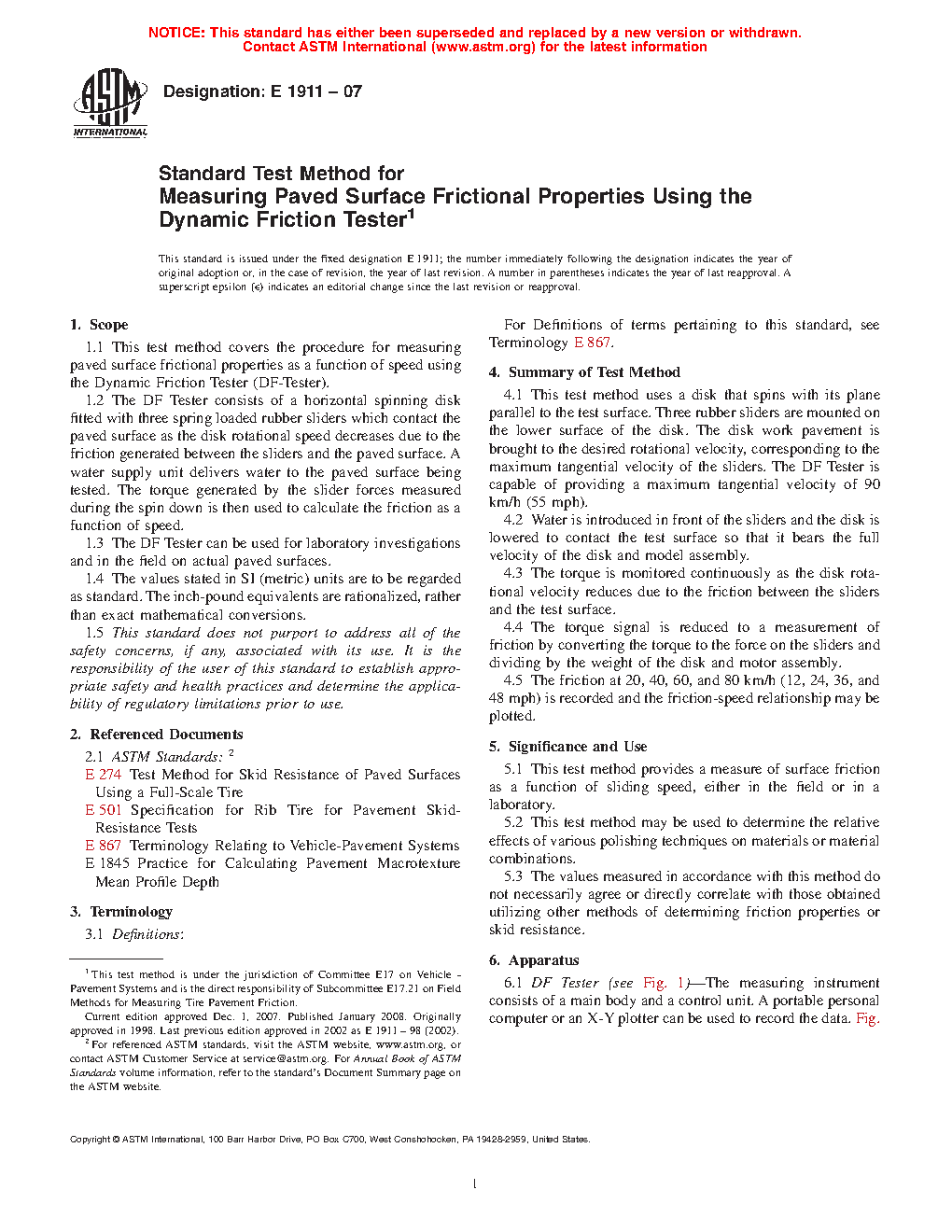 1.5 The Nippo Sangyo dynamic friction tester is covered by a patent. Interested parties are invited to submit information regarding the identification of an alternative(s) to this patented item to ASTM International Headquarters. Your comments will receive careful consideration at a meeting of the responsible technical committee,1 which you may attend.