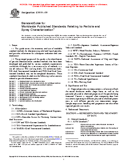 Standard Guide for Worldwide Published Standards Relating to Particle and Spray Characterization