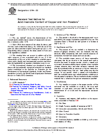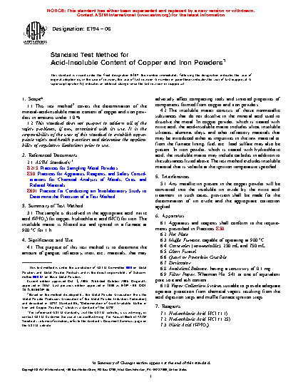 Standard Test Method for Acid-Insoluble Content of Copper and Iron Powders