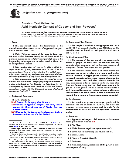 1.1 This test method covers the determination of the mineral-acid-insoluble matter content of copper and iron powders in amounts under 1.0%.