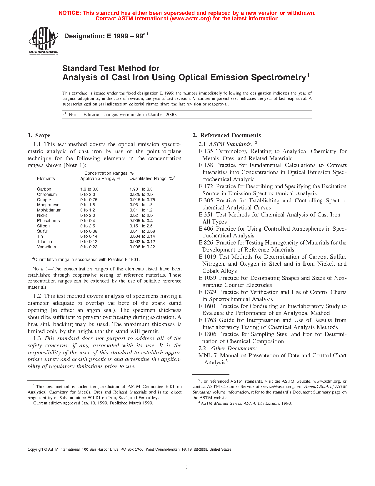 Note 1: The ranges of the elements listed have been established through cooperative testing of reference materials. These ranges can be extended by the use of suitable reference materials.