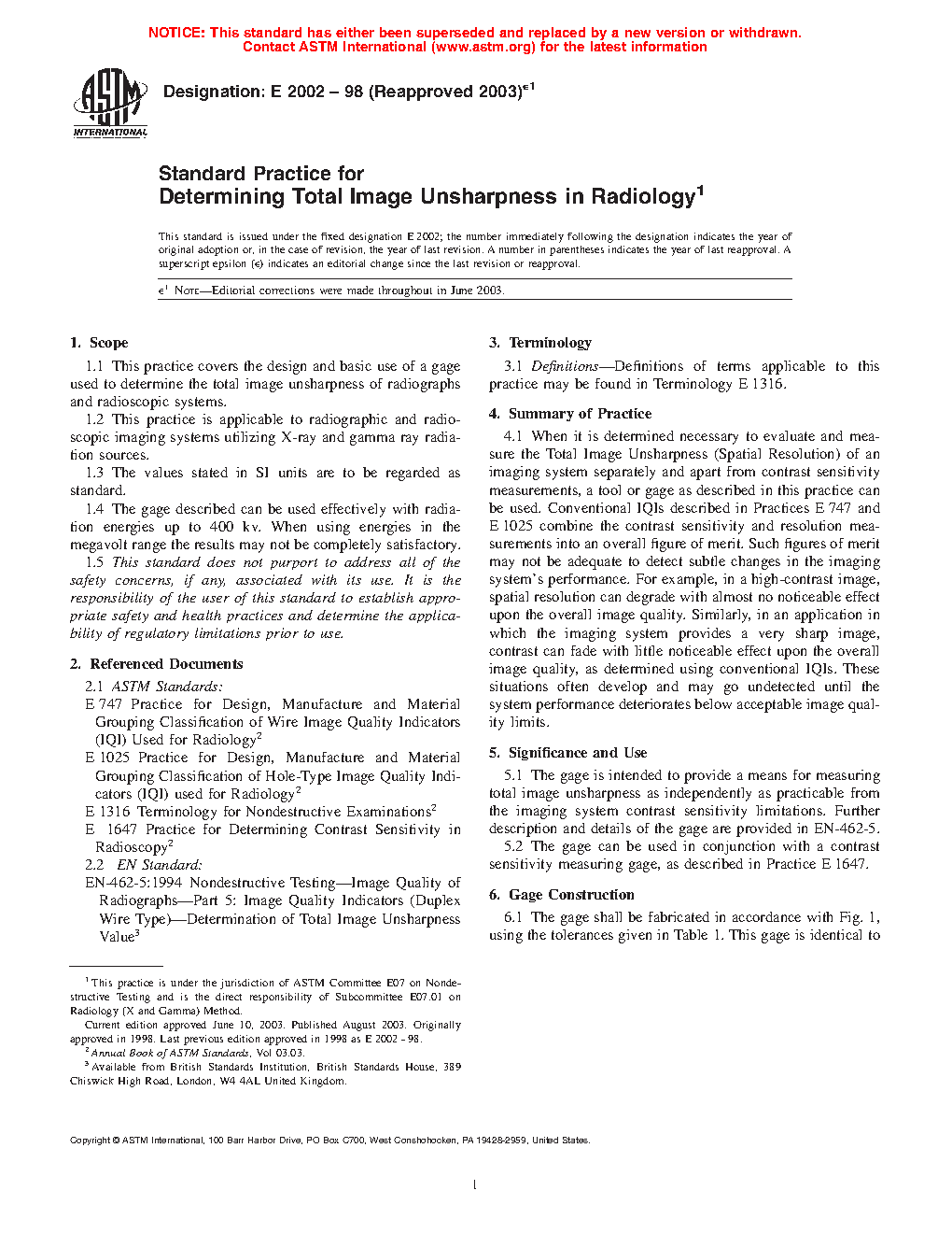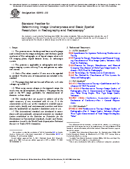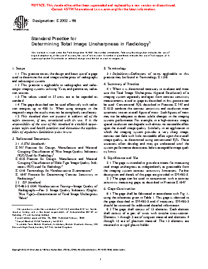 1.1 This practice covers the design and basic use of a gauge used to determine the total image unsharpness of radiographs and radioscopic systems.