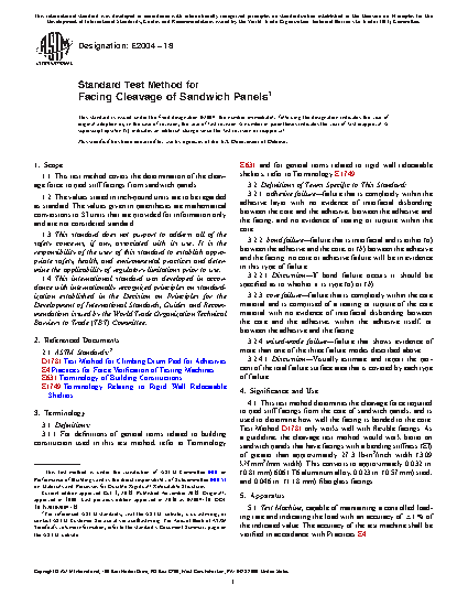 1.1 This test method covers the determination of the cleavage force to peel stiff facings from sandwich panels.