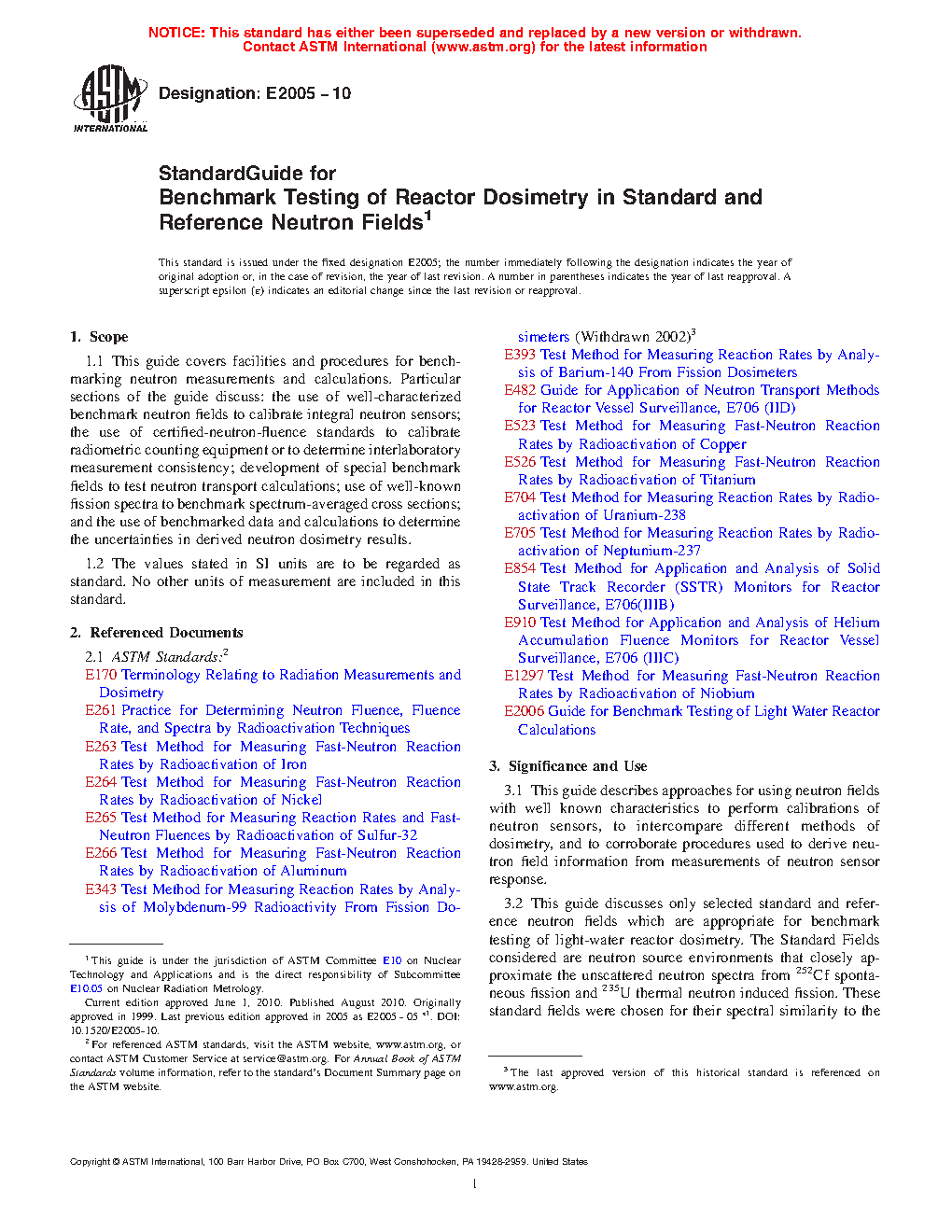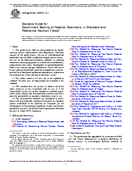 Standard Guide for Benchmark Testing of Reactor Dosimetry in Standard and Reference Neutron Fields