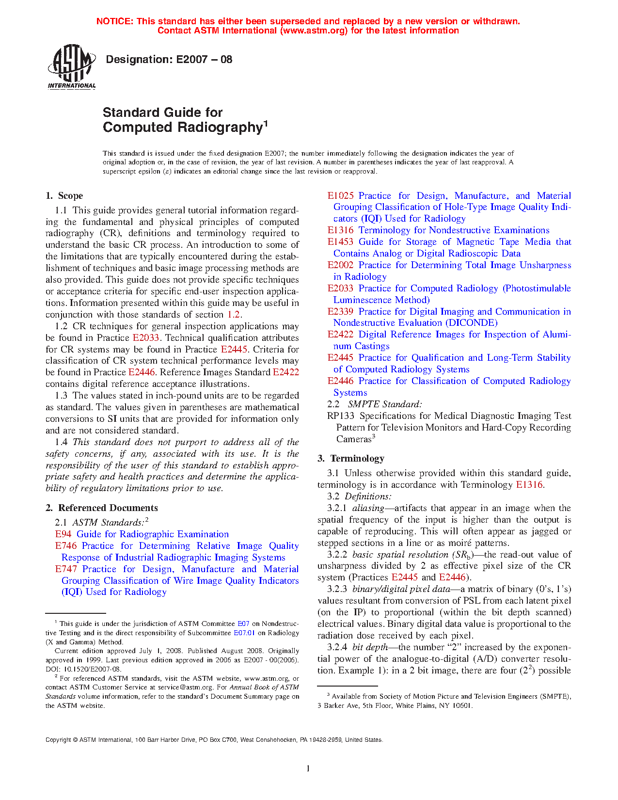 1.2 CR techniques for general inspection applications may be found in Practice E 2033