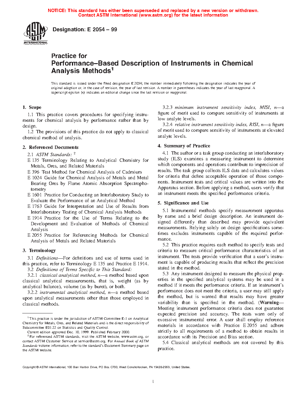 Practice for Performance-Based Description of Instruments in Chemical Analysis Methods (Withdrawn 2005)