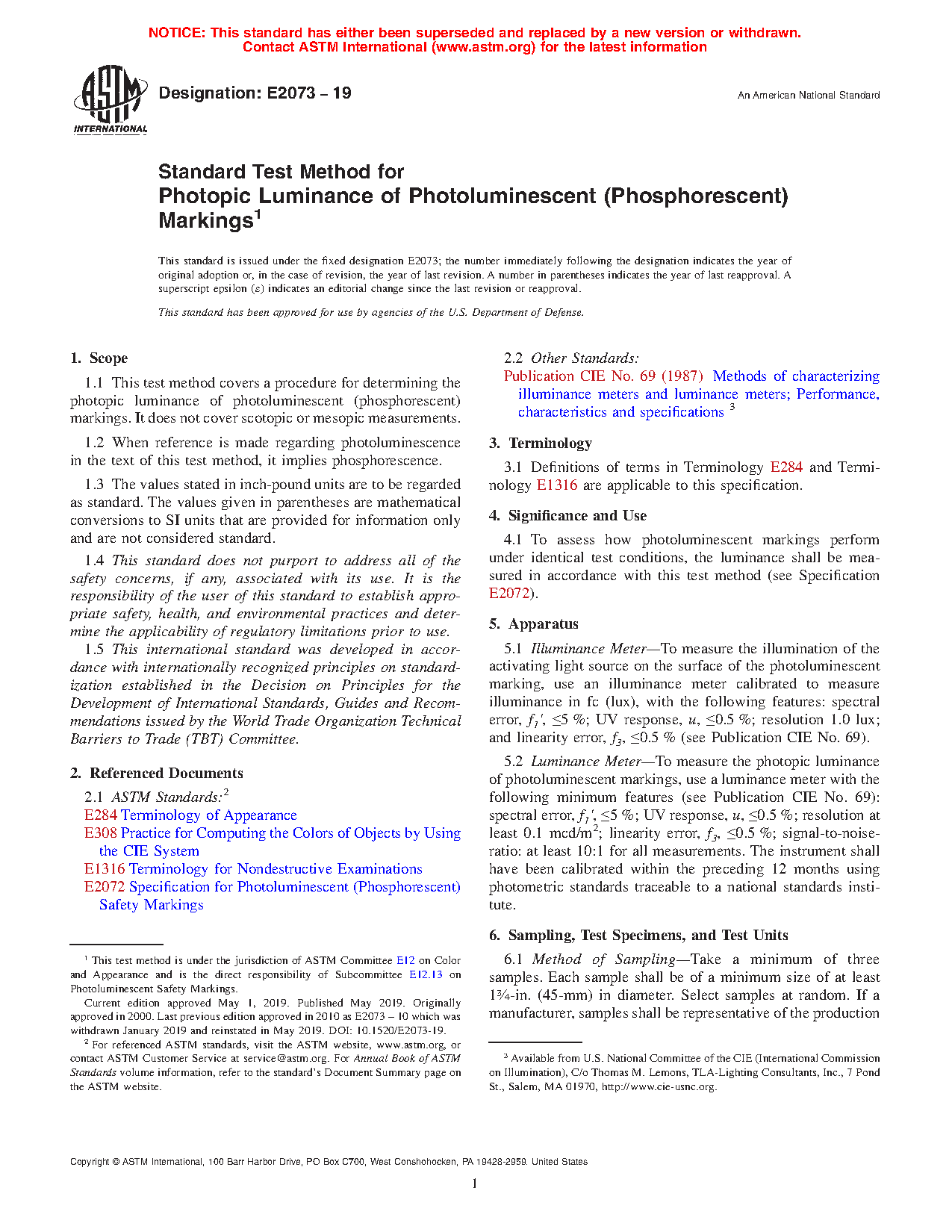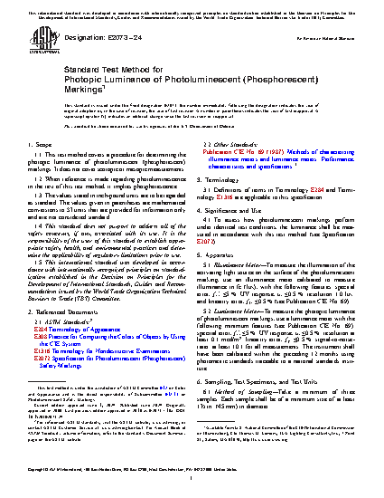 4.1 To assess how photoluminescent markings perform under identical test conditions, the luminance shall be measured in accordance with this test method (see Specification E2072).