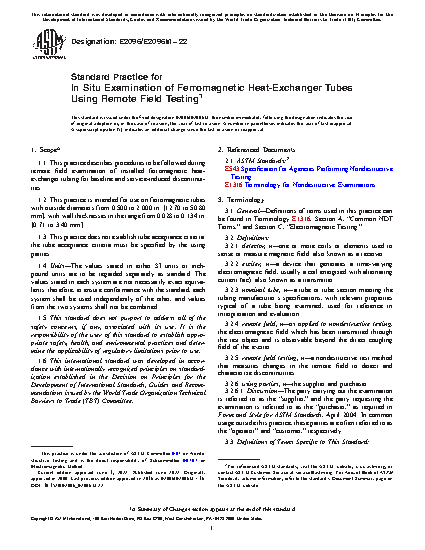 1.1 This practice describes procedures to be followed during remote field examination of installed ferromagnetic heat-exchanger tubing for baseline and service-induced discontinuities.