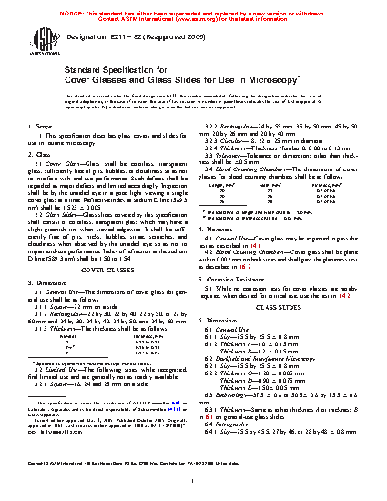 1.1 This specification describes glass covers and slides for use in routine microscopy.