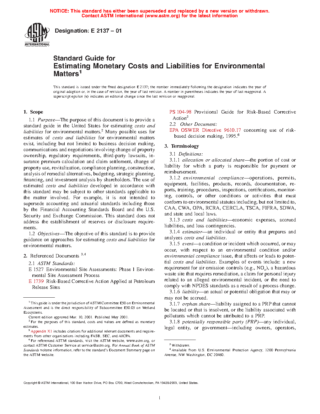 1.2 Objectives—The objective of this standard is to provide guidance on approaches for estimating costs and liabilities for environmental matters.