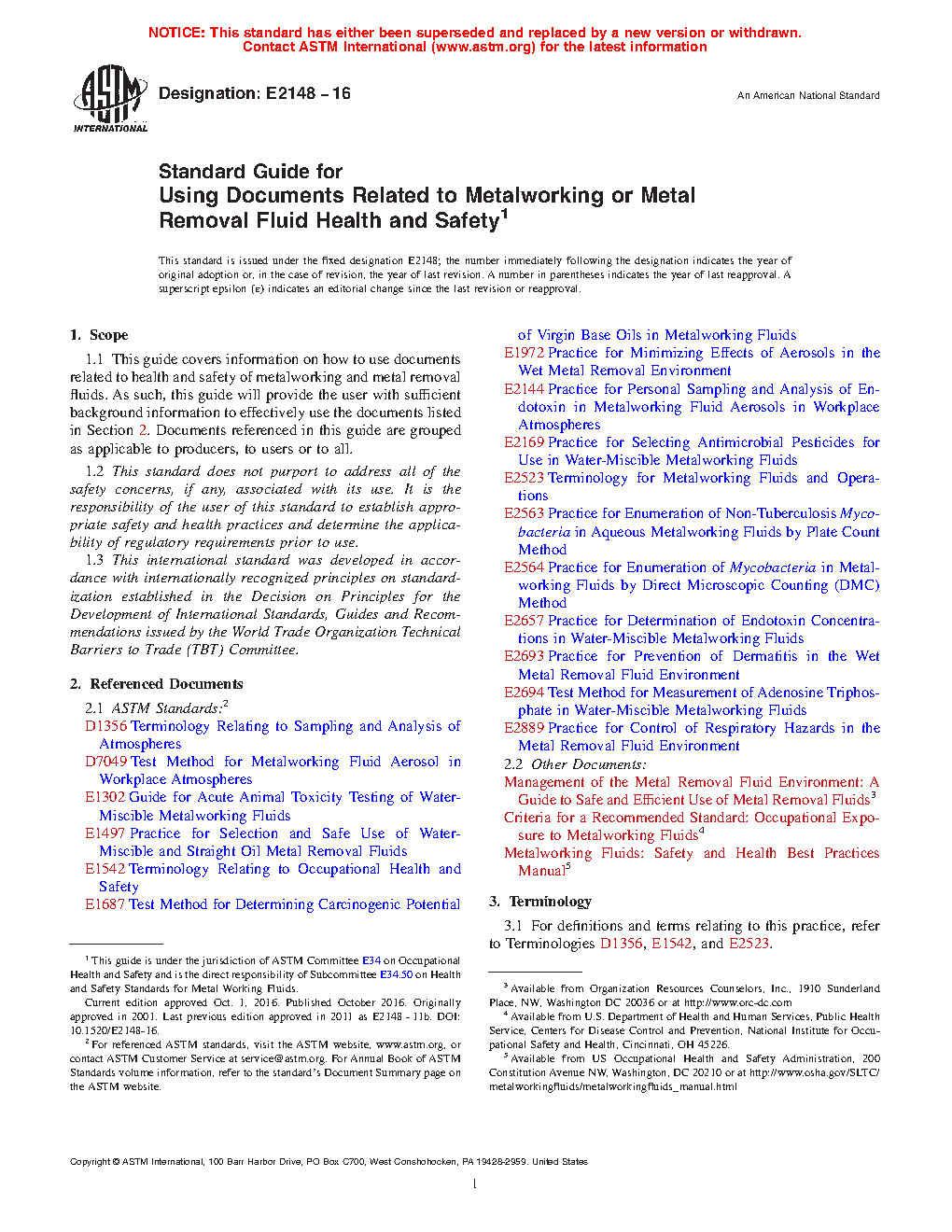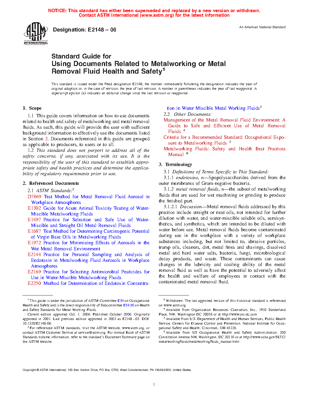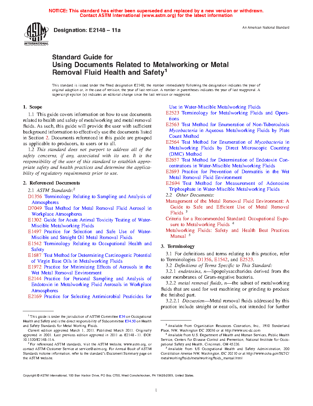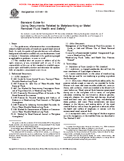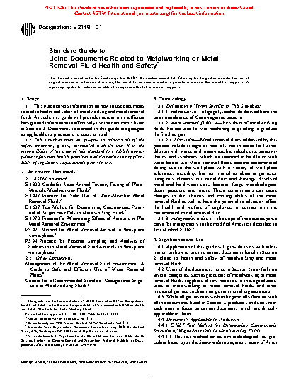 Application of this guide will provide users with information on how to use the various documents listed in Section 2 related to health and safety of metalworking and metal removal fluids.