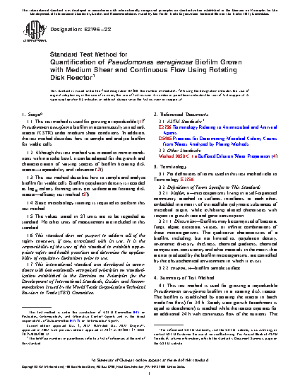 1.2 Although this test method was created to mimic conditions within a toilet bowl, it can be adapted for the growth and characterization of varying species of biofilm (rotating disk reactor—repeatability and relevance (2)).