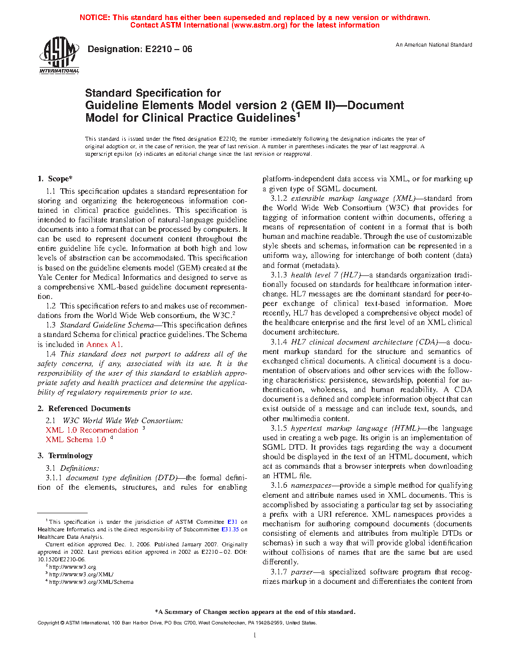 Standard Specification for Guideline Elements Model version 3 (GEM III)—Document Model for Clinical Practice Guidelines (Withdrawn 2021)