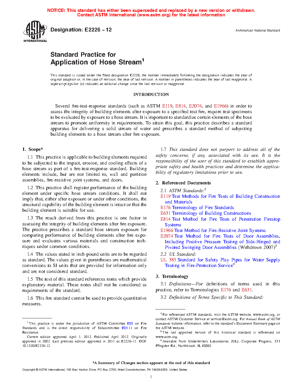 4.2 This practice is intended to be used only after a test assembly has completed a prescribed standard fire-resistance test.