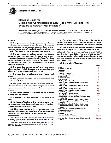 1.1 This guide describes design, specification, selection, installation, and inspection of new building wall systems, exterior deck and stair components, doors, windows, penetrations and sealant joints of wood and metal frame buildings, typically four stories or less, to minimize water intrusion.