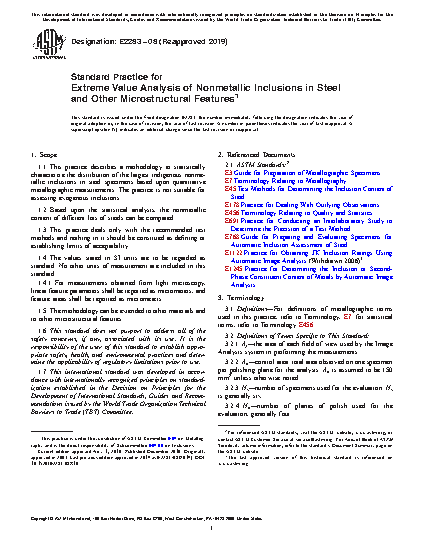 This practice is used to assess the indigenous inclusions or second-phase constituents in metals using extreme value statistics.