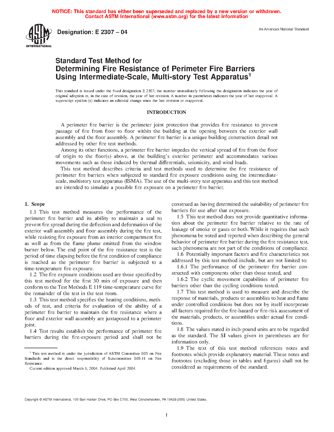 1.5 This test method does not provide quantitative information about the perimeter fire barrier relative to the rate of leakage of smoke or gases or both. While it requires that such phenomena be noted and reported when describing the general behavior of perimeter fire barrier during the fire-resistance test, such phenomena are not part of the conditions of compliance.