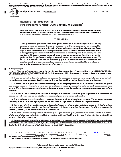 Note 1: The majority of this standard is based on the Model Building Code Evaluation Service2 Acceptance Criteria titled ACCEPTANCE CRITERIA FOR GREASE DUCT ENCLOSURE ASSEMBLIES, AC101, which was created in 1994. Numerous design listings and labeled materials exist based on the provisions of this standard.