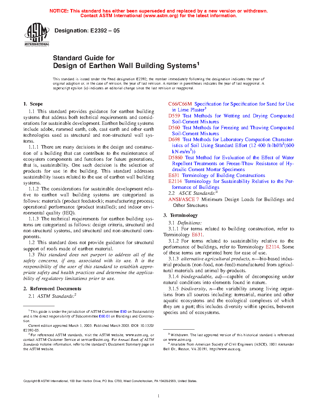 1.1.1 There are many decisions in the design and construction of a building that can contribute to the maintenance of ecosystem components and functions for future generations, that is, sustainability. One such decision is the selection of products for use in the building. This standard addresses sustainability issues related to the use of earthen wall building systems.