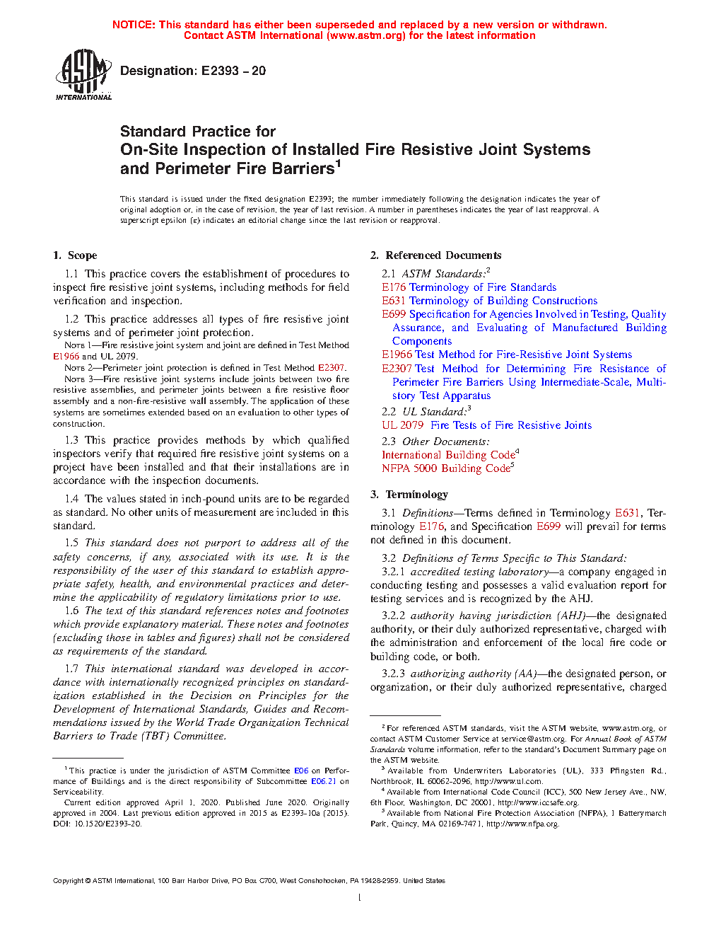1.3 This practice provides methods by which qualified inspectors verify that required fire resistive joint systems on a project have been installed and that their installations are in accordance with the inspection documents.
