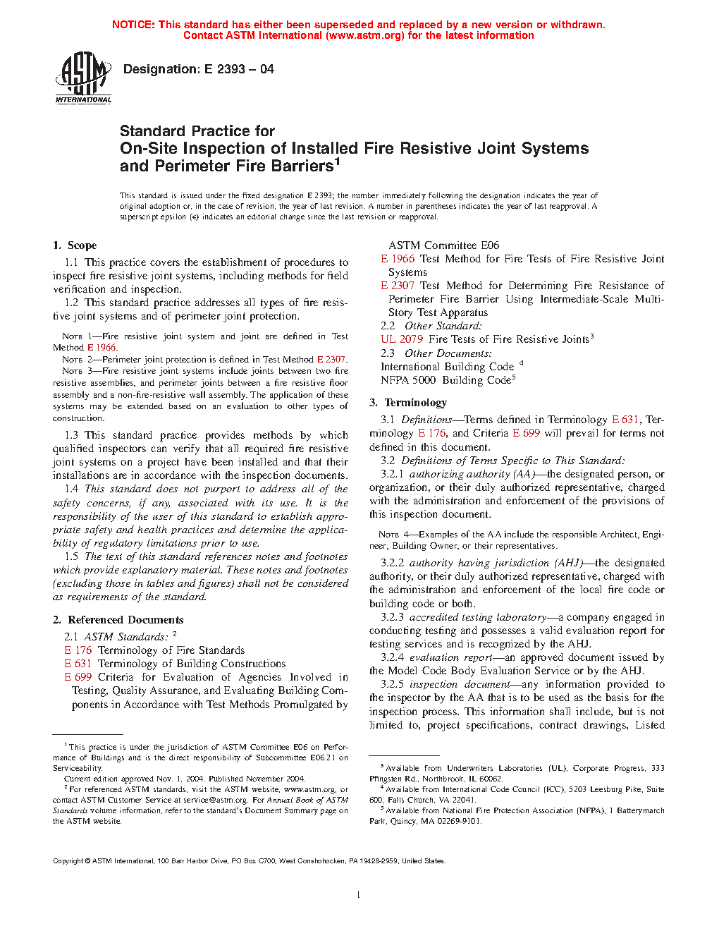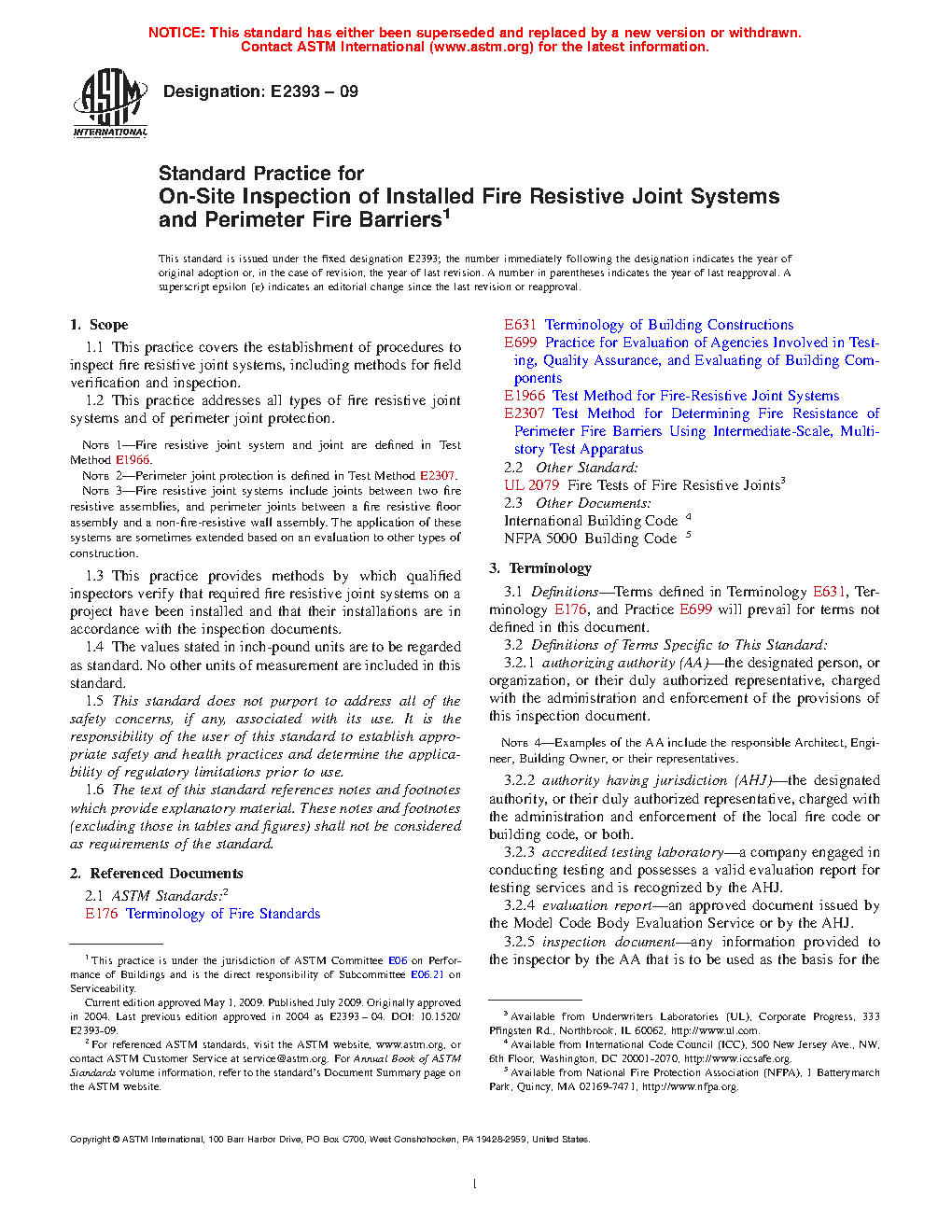 Note 1: Fire resistive joint system and joint are defined in Test Method E1966 and UL 2079.