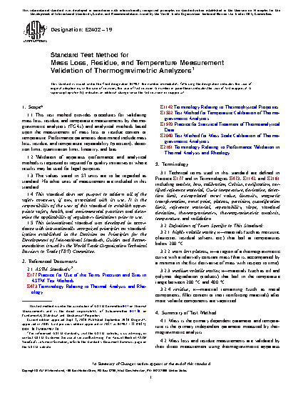 5.2 This test method may be used to validate the performance of a specific method based upon a TGA mass loss or residue measurement.