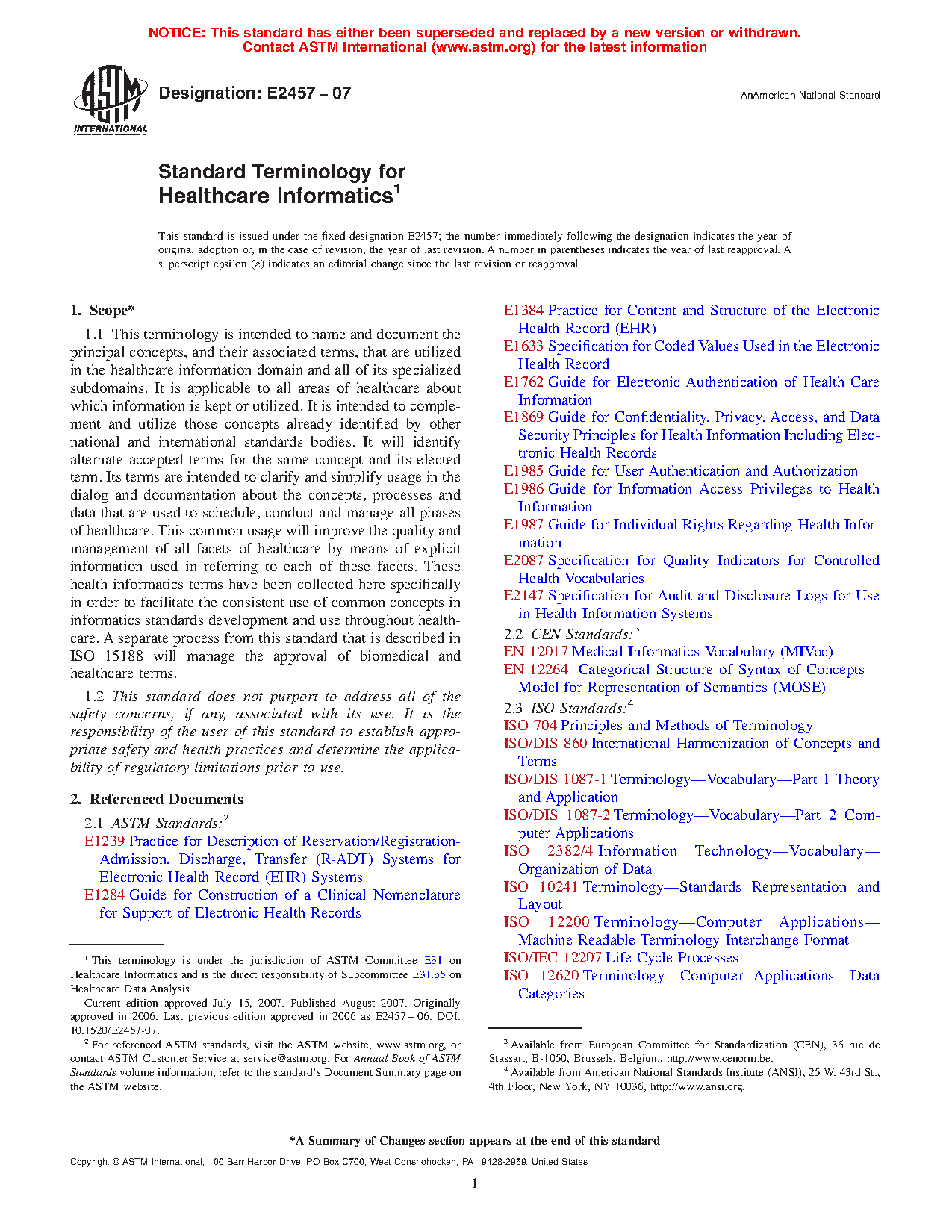 3.1 This standard vocabulary is intended to be used as a reference about terms used in standards for healthcare informatics and in general discussions about informatics issues relating to the healthcare sector, including: clinical care, resource management, policy, clinical or health services research or biomedical research in basic or applied areas of science that refer to the healthcare sector. It contains “Elected Terms” rather than the “Preferred” terms used in the terminologic literature. This is a usage coined within the CEN TC-251 community to reflect the fact that there is consensus agreement on the usage of a particular form rather than an imposition. This consensual agreement to usage better reflects the incentives for common usage rather than mandates. Alternate forms (Synonymy) of an elected term exist and are cataloged for the same concept, in accordance with ISO/DIS 1087-1, ISO 704, ISO 12620, and EN-12017, ISO/DIS 860, EN-12264, and ANSDIT.
