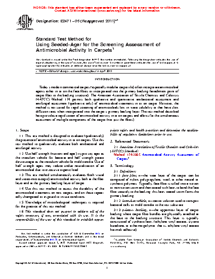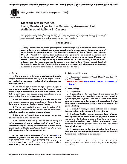 5.3 This test method provides a means to screen for activity and durability of an antimicrobial treatment under conditions of organic loading.